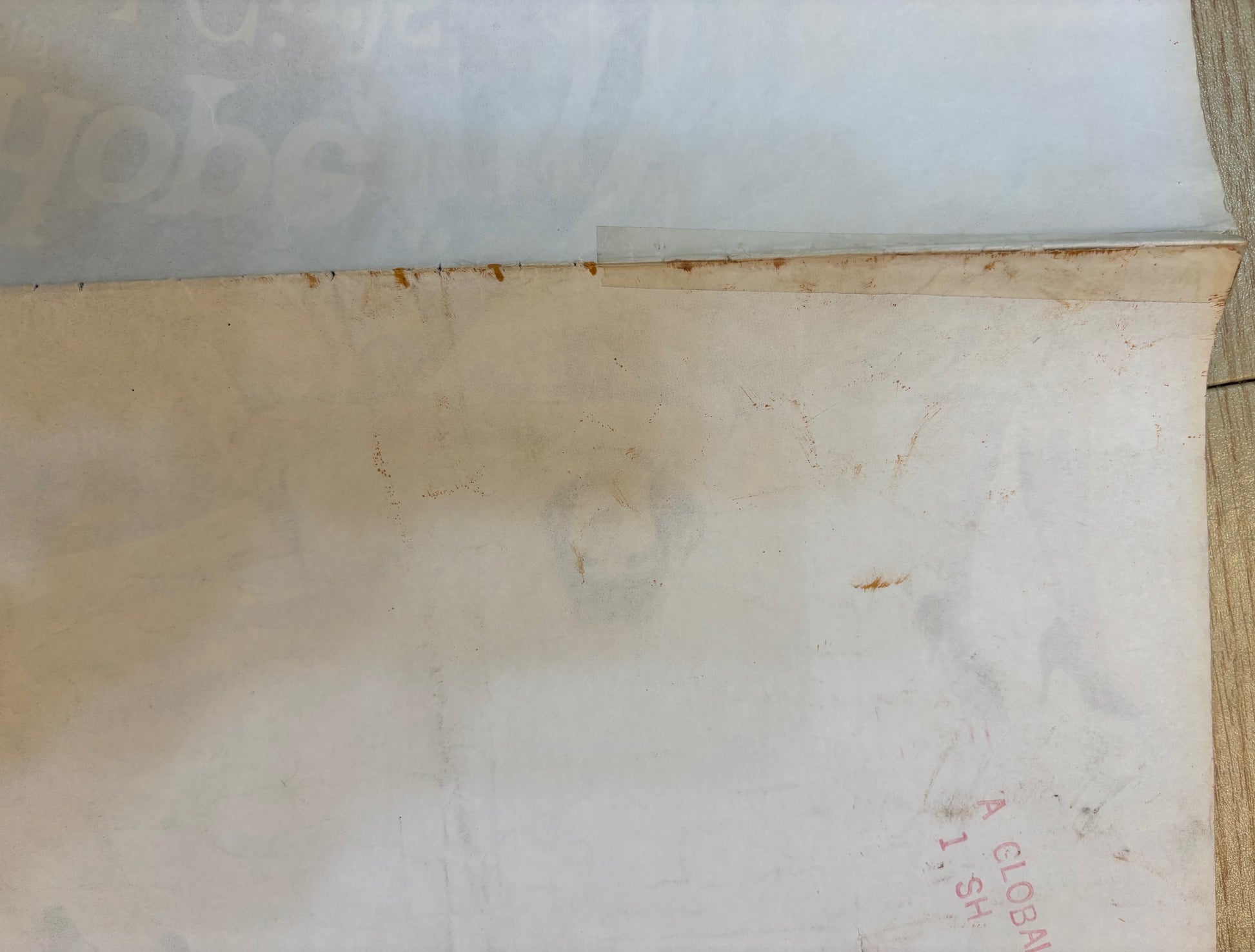 Three 1 x 3" and one 1 x 2" split at folds, several pinholes