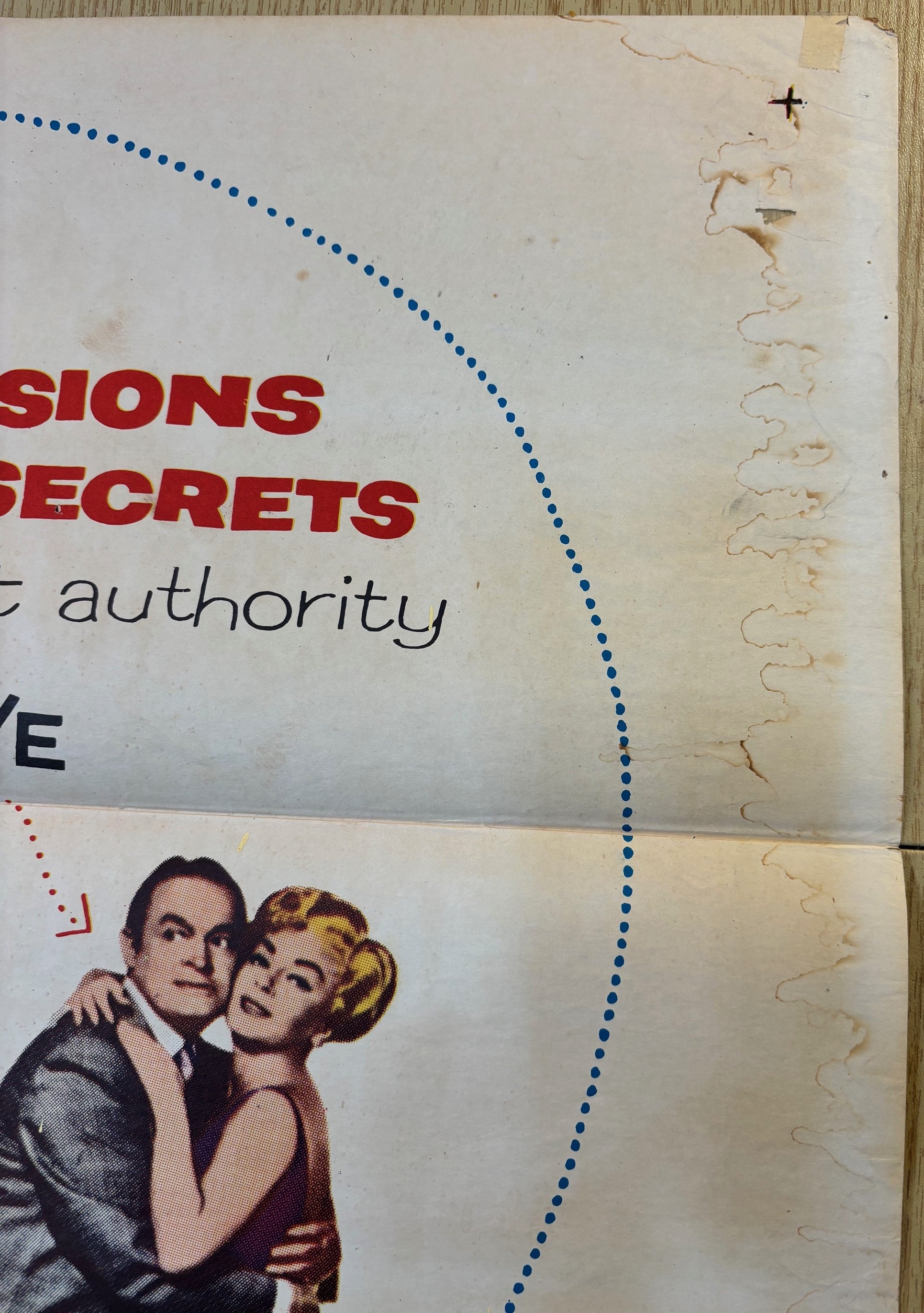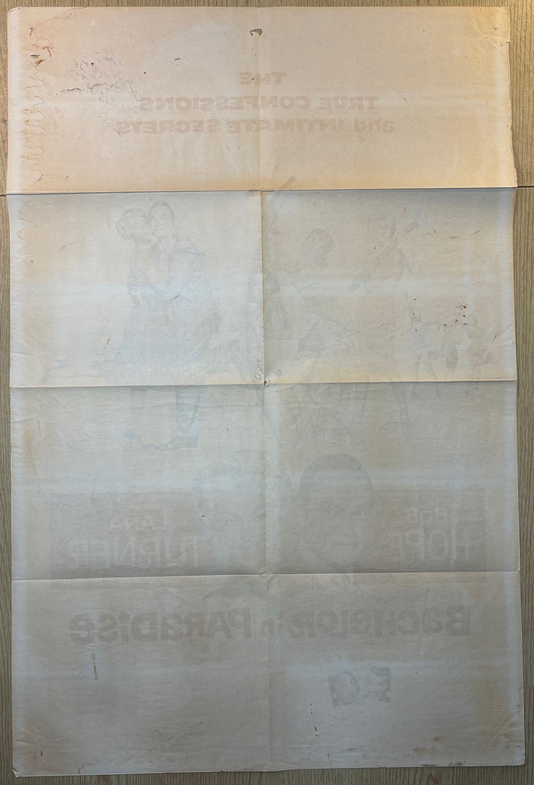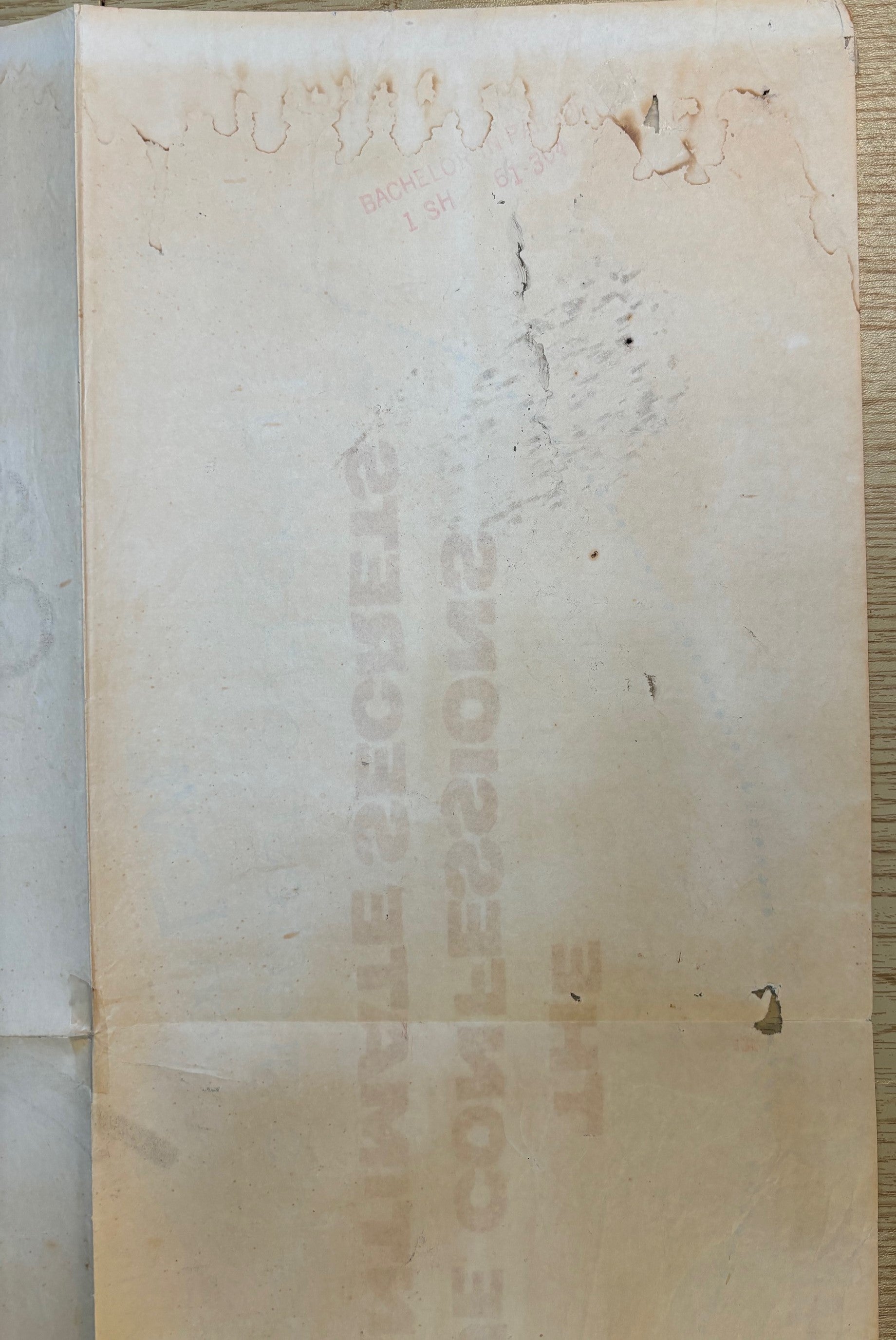 Smudges, including some on front, 1/2 x 1" tape at fold, pinholes