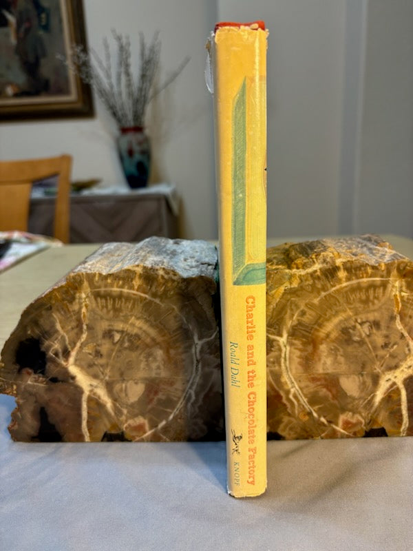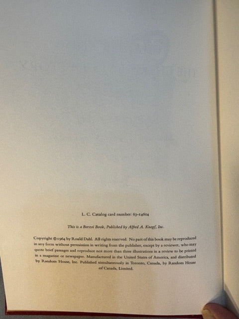 Dahl, Roald. Charlie and the Chocolate Factory. NY: Alfred Knopf, (1964). 1st ed, 1st printing with red cloth, top edge brown and 6-line collophon on last page. 1st issue DJ with no ISBN number on rear panel Book is Near mint, DJ only Fair