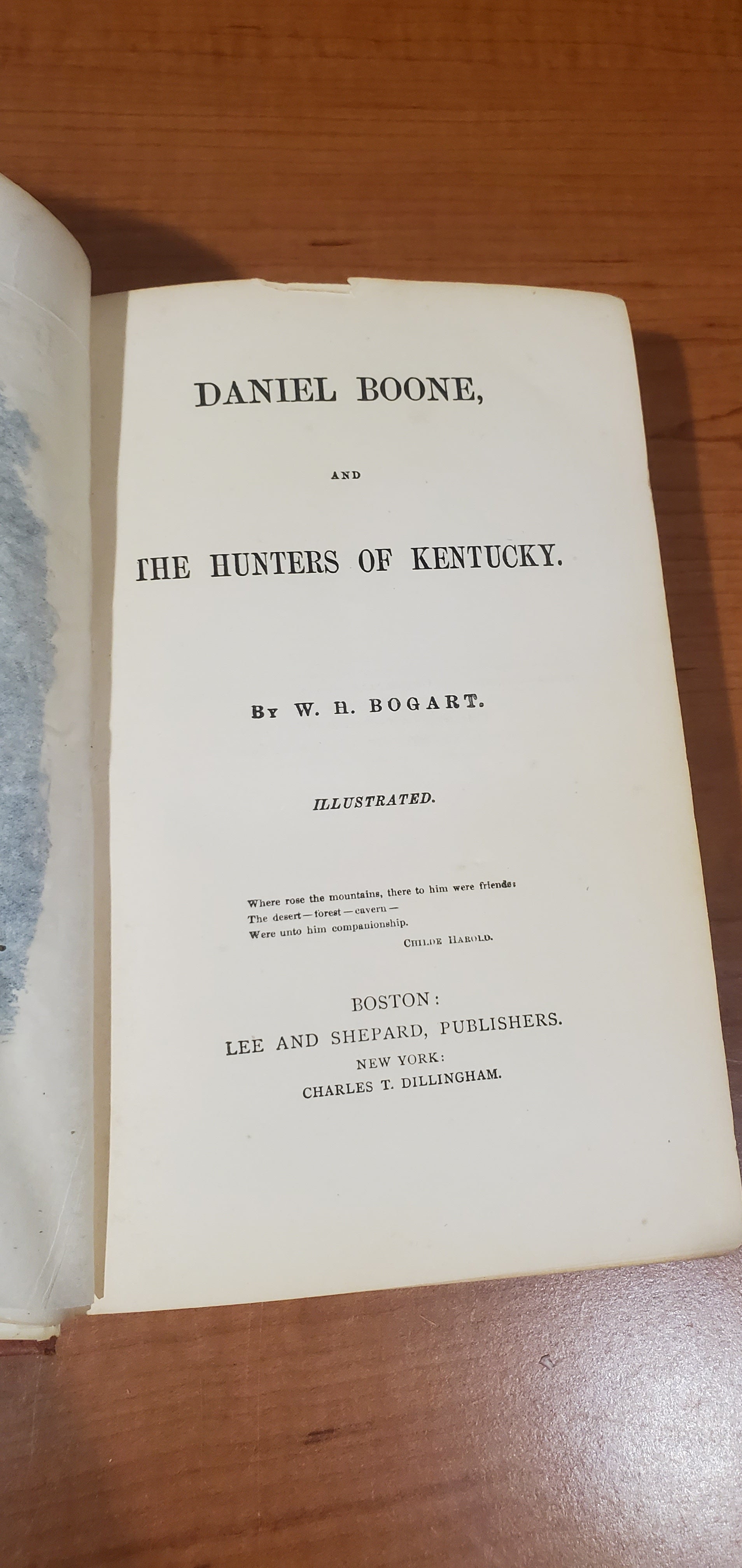 - Bogart, H. B. Daniel Boone and the Hunters of Kentucky. Boston: Lee and Shepard, 1854. Plates. Cloth, gilt. Hinges cracked, page darkening. G