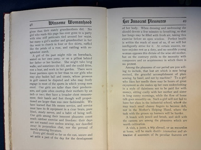 Sangster, Margaret. Winsome Womanhood. NY: Revell, 1900. 1st ed. Illus. Pict cloth, gilt. Front hinge broken, rubbed, frayed. G